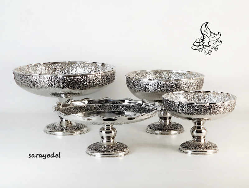 میوه خوری(آجیلخوری) مسی روکش کروم با طرح قلمزنی گل برجسته