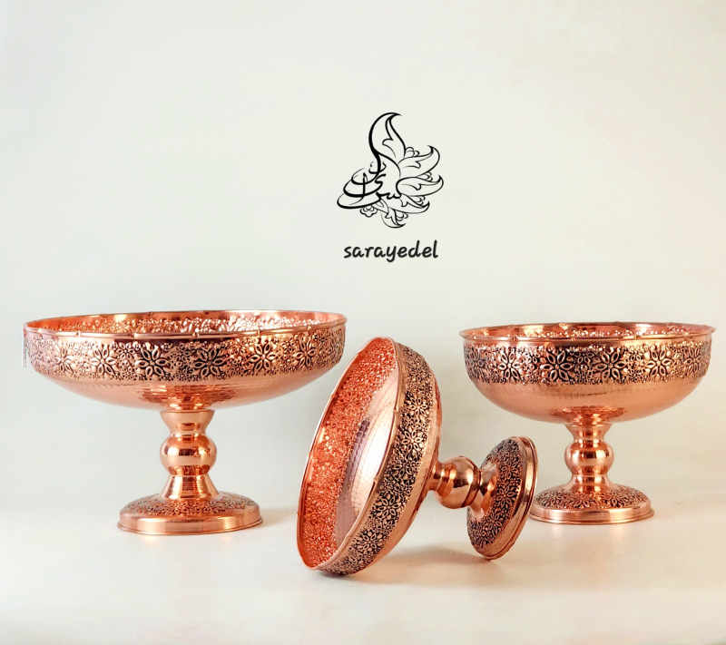 میوه خوری(آجیل خوری) مسی پایه دار طرح گل برجسته
