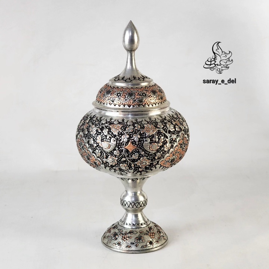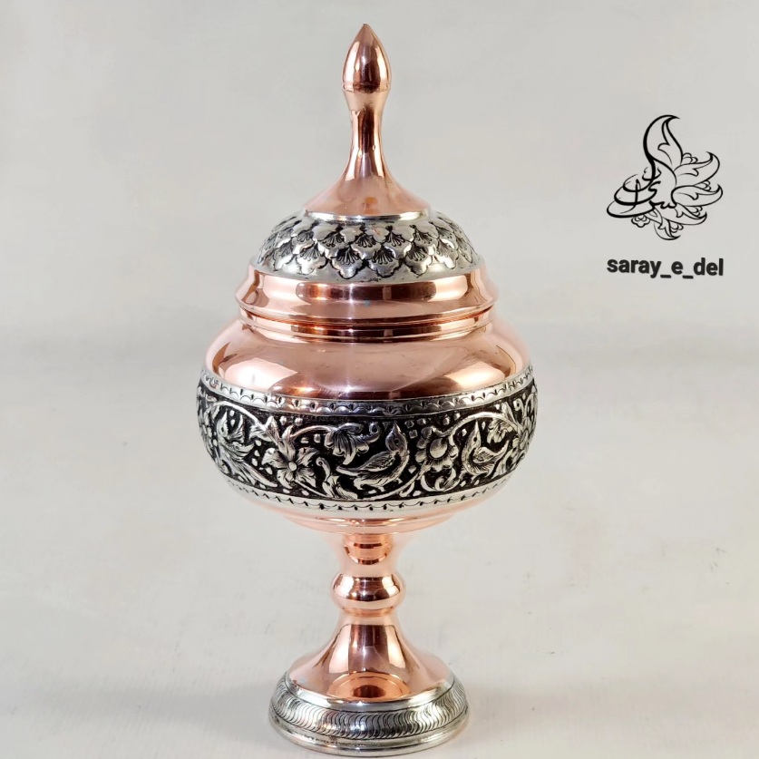 شکلات خوری قندانی مس قلمزنی دو رنگ50155
